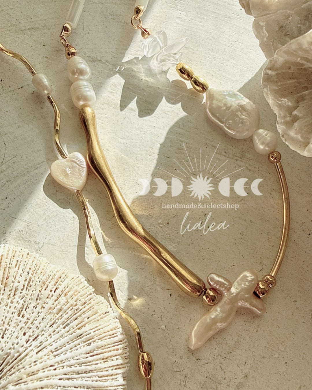 ご覧頂きありがとうございます 月の満ち欠けをモチーフにしたネックレス♡ 月は「満ちて、欠けて、また満ちる」ことから 変化・成長・再生の象徴と言われています。 新月=始まり 満月=達成・実り 欠ける月=手放し・浄化 揺れる月のチャームを散りばめ、 首元にさりげなく存在感を与えるデザインに仕上げました。 カジュアルにもきれいめにも合わせやすく、 重ね付けにもおすすめです。 毎日を頑張るあなたへ、月のお守りを…♡ ・ 長さ約45cm アジャスター5cmあり チャーム*k18 チェーン*サージカルステンレス こちらは金具部分がサージカルステンレスなので肌が弱い方でもご利用いただけます。 *サージカルステンレスとは… メス等の医療器具にも使われているお肌に優しい素材で作られているので安心してお使い頂けます。 ※アレルギー反応には個人差があるため絶対に反応しないとは言えません。 万が一アレルギー反応が出た際は、仕様を中止し、医師にご相談ください。 傷がつきにくい硬い性質を持つので日常使いにもピッタリです。 また錆びにくく、変色しにくいです。 ステンレス素材、真鍮は錆びにくい素材ですが、使い方や保管環境次第では全く錆びない訳ではございません。長くお使い頂くために、水に濡れた場合はアクセサリー用のクロス等で水分を除去することを推奨します。