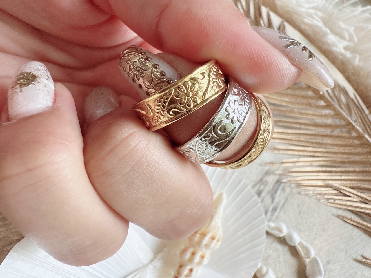 ゴールドは華やかさを、シルバーは透明感を演出してくれるので、気分やコーデに合わせて楽しめます。