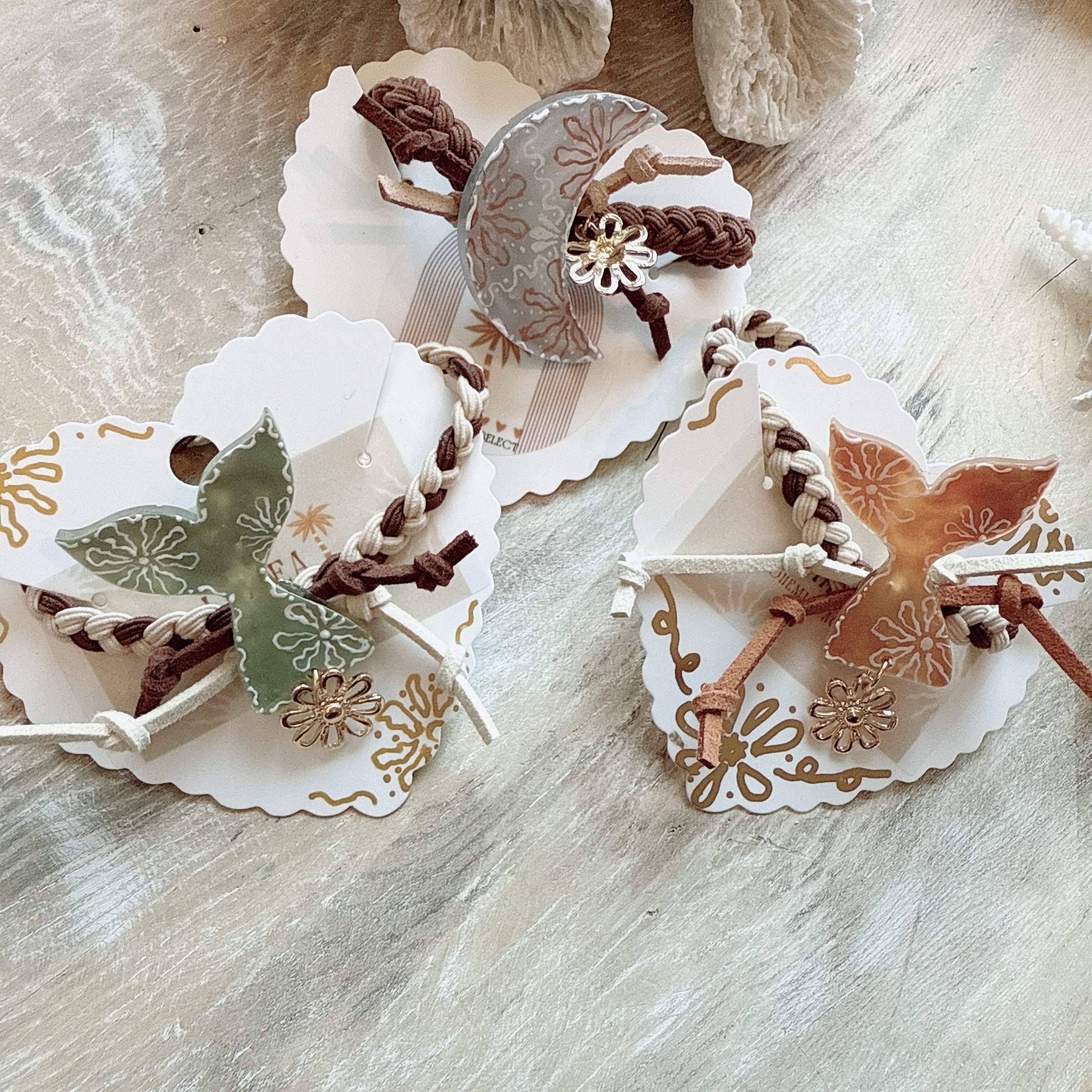 レジンを使って作ったヘアゴムになります。