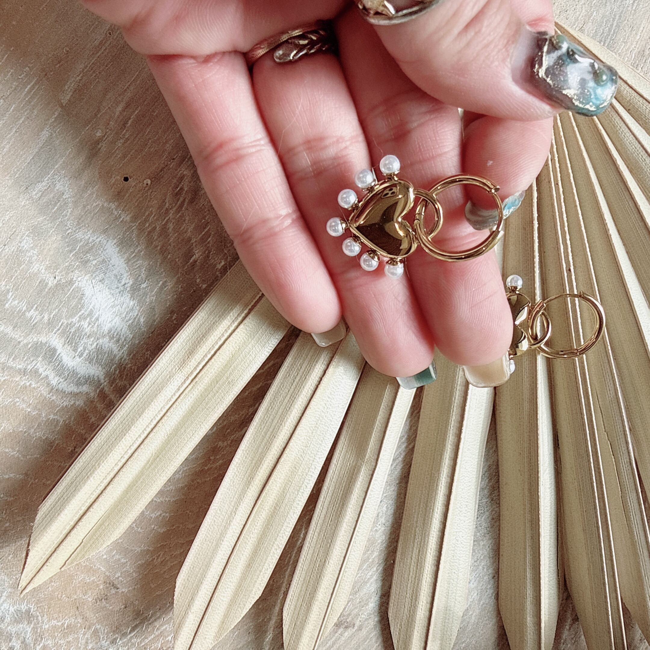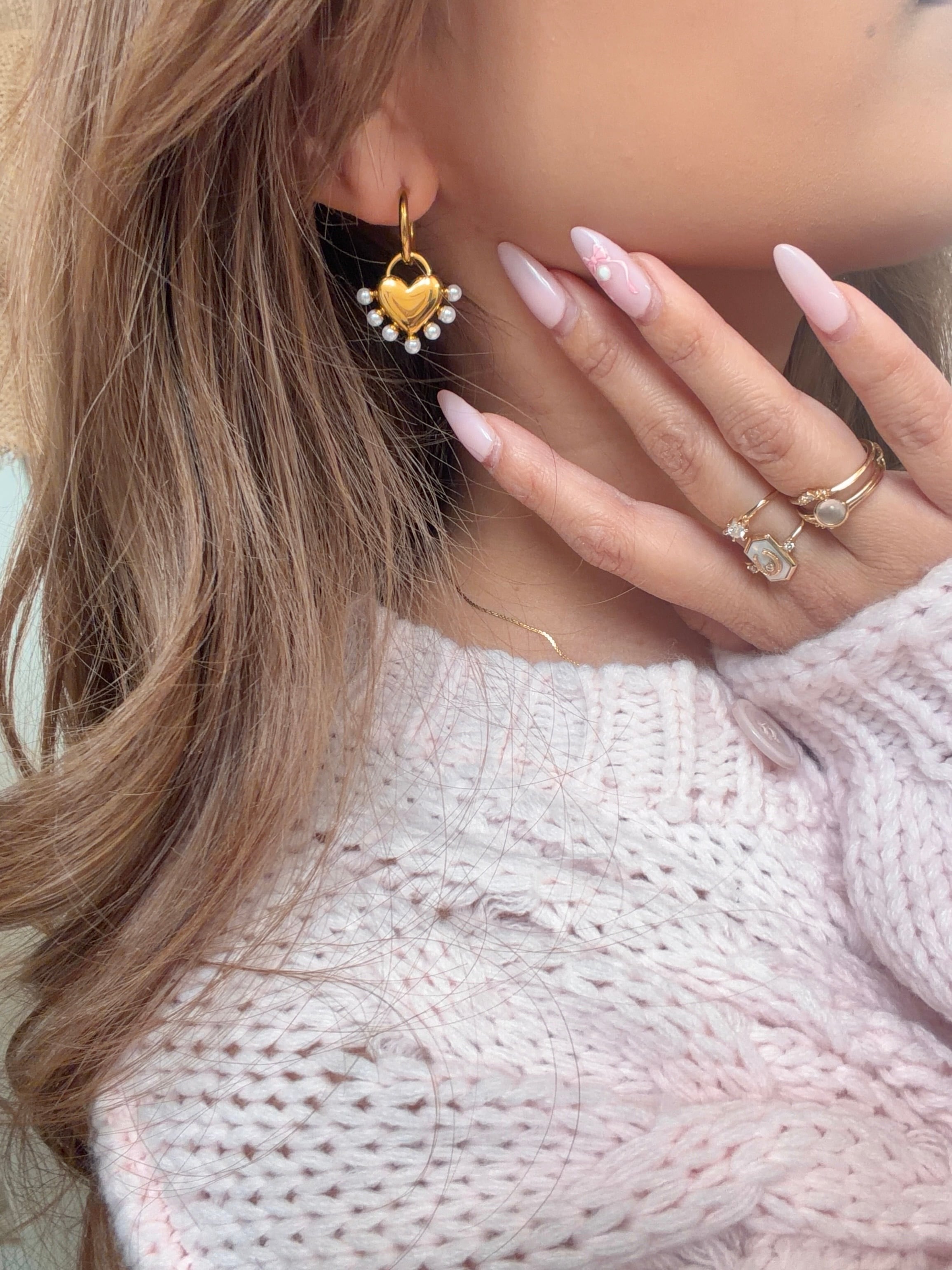 ぷっくりハートに、小粒パール♡